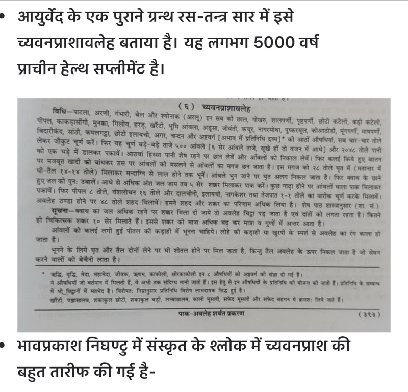 - 👉 आयुर्वेदिक ग्रंथ चरक संहिता और भावप्रकाश निघण्टु में च्यवनप्राश को “सर्वश्रेष्ठ रसायन” कहा गया है।