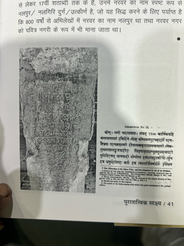 - यह अभिलेख इतिहास की कई प्राचीन पुस्तकों में उद्धृत है, जिसके अनुसार इसमें नलपुर (नरवर) नगर की प्रशंसा की गई है।