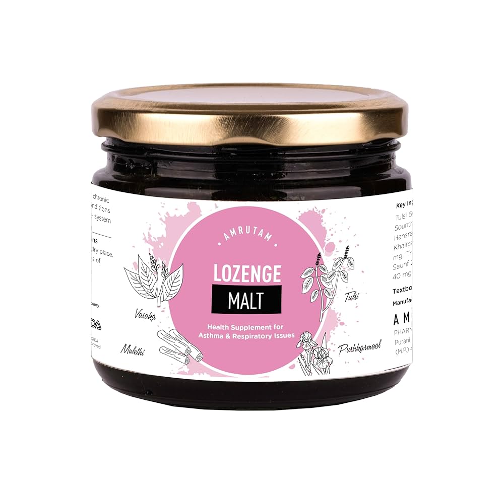 - Amrutam Lozenge Malt is an Ayurvedic medicinal recipe crafted with the goodness of Tulsi, Vasa, Mulethi, Pushkarmool and Tribhuvan Kirti Ras. It is an effective remedy for chronic cough, cold, sinusitis, asthma, allergic bronchitis, upper and lower respiratory diseases, whooping cough and allergic rhinitis.