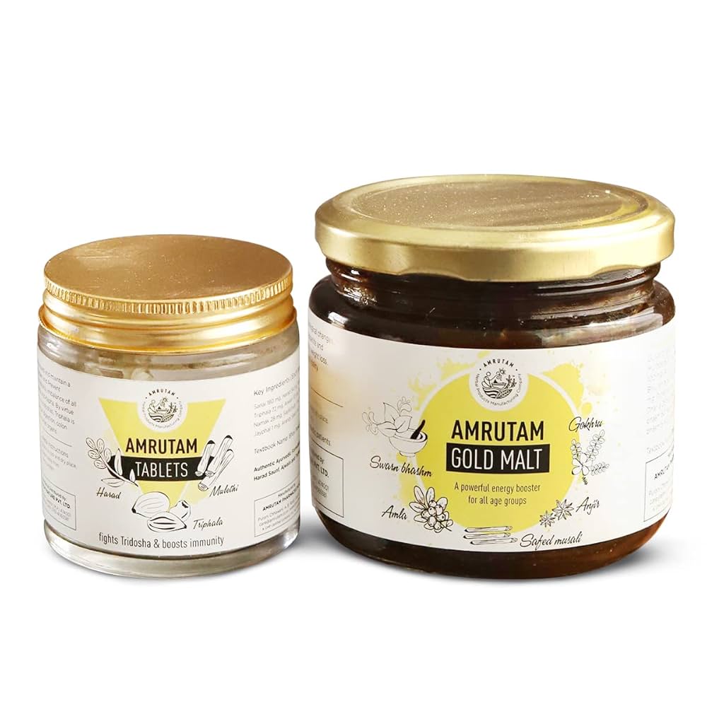 अमृतम आयुर्वेद का यह अद्भुत गोल्ड माल्ट हर रोग को मिटाने वाली हरड़ (हरीतकी) के मुरब्बे से निर्मित है।