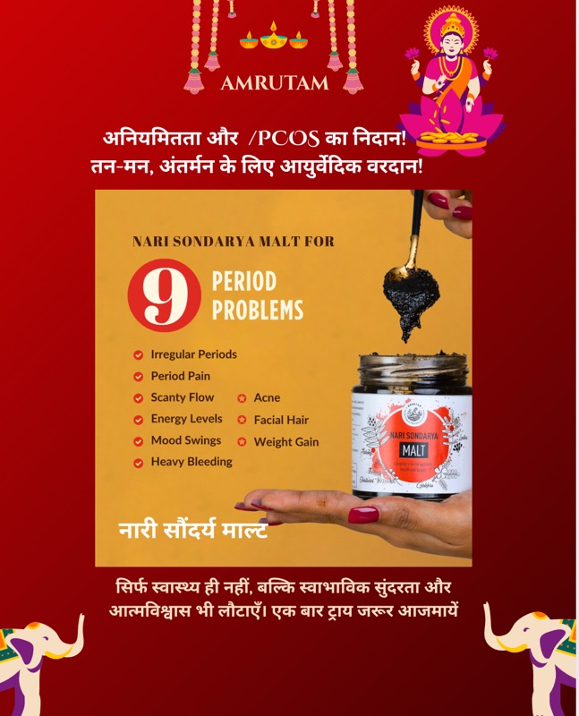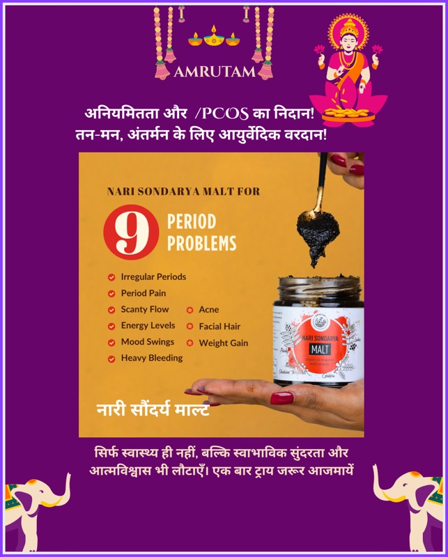 - Amrutam Nari Sondarya Malt से नारी स्वास्थ्य, ऊर्जा और सुंदरता सुनिश्चित करें।