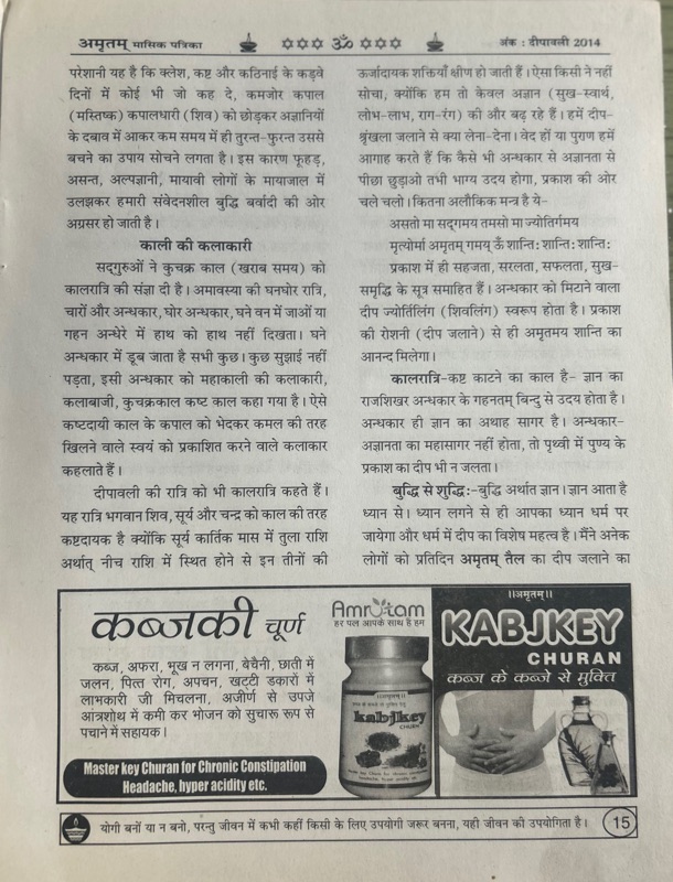 - अमृतम्” का अर्थ ही है — जो मृत्यु को भी अमृत बना दे। प्रत्येक दीपावली, हमें याद दिलाती है कि हर अंधकार के भीतर एक महाकाली सोई है — जिसे जाग्रत करना ही जीवन का असली उत्सव है।